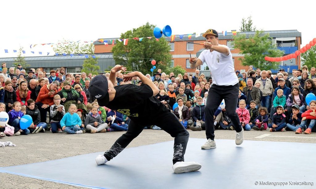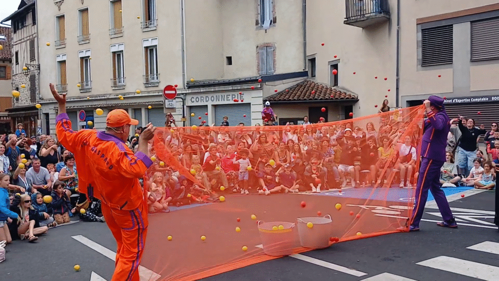Le jonglage et la musique sont en interaction constante, et le public est invité à participer à certains passages.